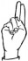 На ћирилици написано РАДНА ТОШКОВИЋ састоји се из 13 слова [?]. Исписано ћириличном једноручном азбуком за глувонеме: